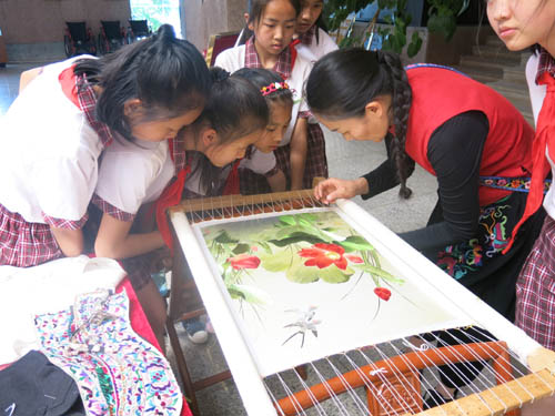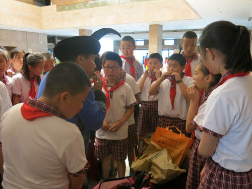 活動主會場設在展館大廳,活動項目主要包括:一、制作(zuò)粘貼2016國(guó)際博物(wù)館日主題粘貼畫、懸挂科(kē)技(jì )活動周“新(xīn)創引領  共享發展”主題布标,積極營造會場活動氛圍;二、以展闆展架形式展出十多(duō)塊民(mín)族傳統科(kē)技(jì )文(wén)物(wù)系列圖文(wén)資料;三、以展台形式展出了在我館幫助指導下取得的館校合作(zuò)教育創新(xīn)成果,包括求實小(xiǎo)學(xué)“非物(wù)質(zhì)文(wén)化遺産(chǎn)進校園傳承研究成果展示”和大漁中(zhōng)心校“苗族蠟染創新(xīn)實驗成果展示”兩部分(fēn)内容; 四、于5月18日下午在報告廳舉行2016年博物(wù)館志(zhì)願者招募儀式。我館新(xīn)招募一批由度假區(qū)實驗學(xué)校三年級學(xué)生組成的25名(míng)志(zhì)願者,教育推廣部工(gōng)作(zuò)人員向他(tā)們免費發放了志(zhì)願者工(gōng)作(zuò)服及講解詞。楊松海副館長(cháng)代表館領導緻辭發言;五、組織了昆明市西山(shān)區(qū)求實小(xiǎo)學(xué)、大漁中(zhōng)心校和度假區(qū)實驗學(xué)校等三所學(xué)校近200名(míng)師生參與教育實踐觀摩活動。同時邀請民(mín)族器樂演奏、刺繡、剪影、泥塑等方面的民(mín)間藝人進行現場展演和互動交流,為(wèi)師生們帶來視覺和聽覺盛宴的同時,也實現了非遺文(wén)化的傳承教育。
