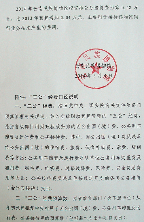 雲南民(mín)族博物(wù)館“ 三公(gōng)”經費預算公(gōng)開說明